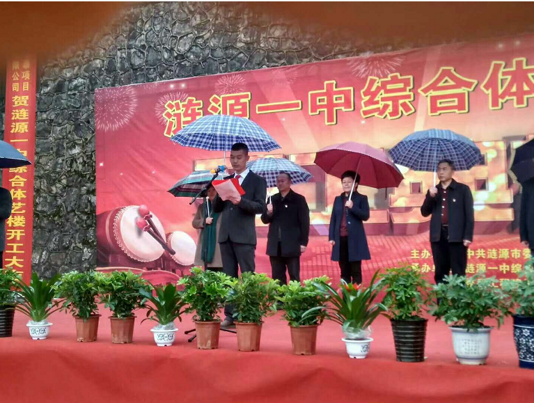 2018年1月16日,由我司中標承建的漣源市第一中學體藝綜合樓開工慶典儀式在漣源市第一中學校園內舉行。漣源市委市政府四大家的領導及建設、施工、監理單位的領導參加了慶典儀式。公司副總經理顏克靈先生代表公司出席開工慶典并講了話。