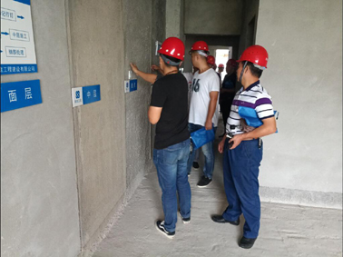 觀摩代表們來到施工現(xiàn)場,認(rèn)真觀看了企業(yè)及項(xiàng)目簡介視頻、機(jī)噴砂漿工藝視頻、常見質(zhì)量問題治理的模型示范樣板區(qū)、工程實(shí)體質(zhì)量樣板區(qū)等。輕質(zhì)混凝土砌塊砌筑、構(gòu)造柱及窗臺壓頂留置、門窗洞口弱框架、內(nèi)外墻機(jī)噴抹灰、外墻內(nèi)保溫、屋面防水、水電安裝等工程的每道環(huán)節(jié)、工藝標(biāo)準(zhǔn)都用標(biāo)牌標(biāo)注得清清楚楚。并了解到我司在施工前期的創(chuàng)優(yōu)策劃,施工過程中堅持“事前交底、事中控制、事后驗(yàn)收”等一些好的管理方法。觀摩代表們紛紛表示,此次觀摩為進(jìn)一步深化工程常見質(zhì)量問題防治、推進(jìn)質(zhì)量標(biāo)準(zhǔn)化、工程創(chuàng)優(yōu)積累了寶貴經(jīng)驗(yàn)。我司主要負(fù)責(zé)人、技術(shù)人員、講解員與觀摩代表們分享了在工程質(zhì)量常見問題專項(xiàng)治理等方面一些好的工作經(jīng)驗(yàn)和做法。