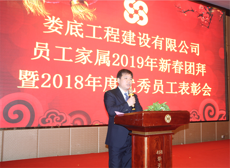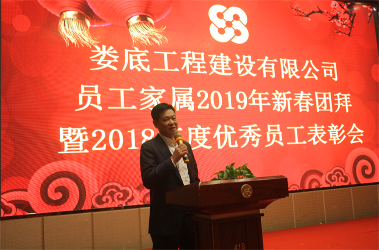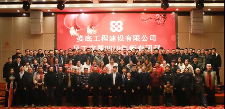 2019年2月13日,農歷正月初九,婁底工程建設有限公司2019年新春團拜暨2018年優秀員工表彰會在婁底418華天大酒店泰山廳隆重舉行。來自全司各施工項目部、各所屬單位、機關部室、湘中礦業集團婁底本部的員工及員工家屬共260余人參加了新春團拜及優秀員工表彰活動。公司董事長張愛慧先生、總經理胡勁先生分別致辭,湘中礦業集團總裁助理、法人代表聶武湘先生、戰略顧問袁明毓先生參加了團拜會并給優秀員工頒獎。表彰會后,公司全體員工合影留念并高唱《團結就是力量》。會上還舉行了幸運大抽獎、歡樂運輸、舞蹈表演、詩歌朗誦等豐富多彩的文體活動。