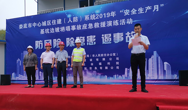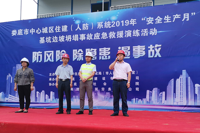 為深入貫徹黨的十九大和十九屆二中、三中全會(huì)精神,認(rèn)真學(xué)習(xí)貫徹習(xí)近平總書記關(guān)于安全生產(chǎn)的重要論述,為新中國(guó)成立70周年?duì)I造良好的安全生產(chǎn)環(huán)境,積極響應(yīng)省、市關(guān)于2019年“安全生產(chǎn)月”活動(dòng)的有關(guān)文件要求,加強(qiáng)建筑工地應(yīng)對(duì)突發(fā)事件的處理能力,提高全員安全意識(shí),切實(shí)掌握應(yīng)急救援的技能、技巧,讓員工在事故發(fā)生時(shí)將傷害減少到最低。我司特承辦了由婁底市住房和城鄉(xiāng)建設(shè)局(人民防空辦公室)主辦的2019年“安全生產(chǎn)月”“防風(fēng)險(xiǎn)、除隱患、遏事故"建筑施工基坑坍塌事故應(yīng)急救援演練活動(dòng)。