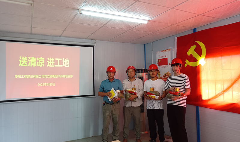 炎炎夏日,揮汗如雨。為保障員工的身體健康,確保全體員工全身心投入到安全生產(chǎn)工作中,6月5日,公司黨支部到衡陽華僑城項(xiàng)目部開展了“送清涼 進(jìn)工地”慰問活動(dòng)。