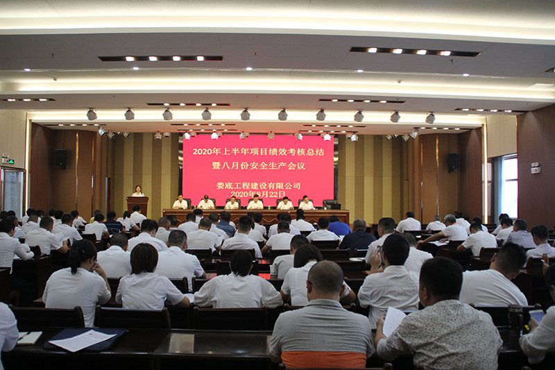 2020年8月22日上午9時,公司在9樓多功能會議廳召開2020年上半項目績效考核總結暨八月份安全生產會議,公司總經理胡勁、總經理助理姜建輝、總工程師李偉、副總經理彭洪偉、顏克靈,財務總監戴文彬出席此次會議,公司各部室及項目管理人員100余人參加了此次會議。