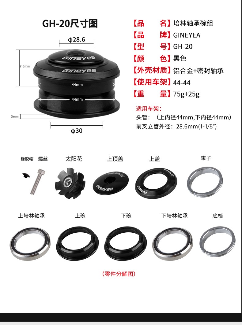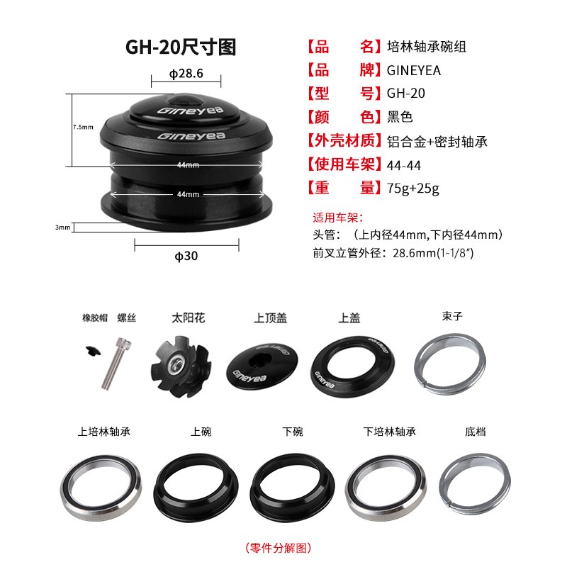 景曄自行車前叉腕組陶瓷軸承直管34/44/41/41.8mm椎管44-50.6/56