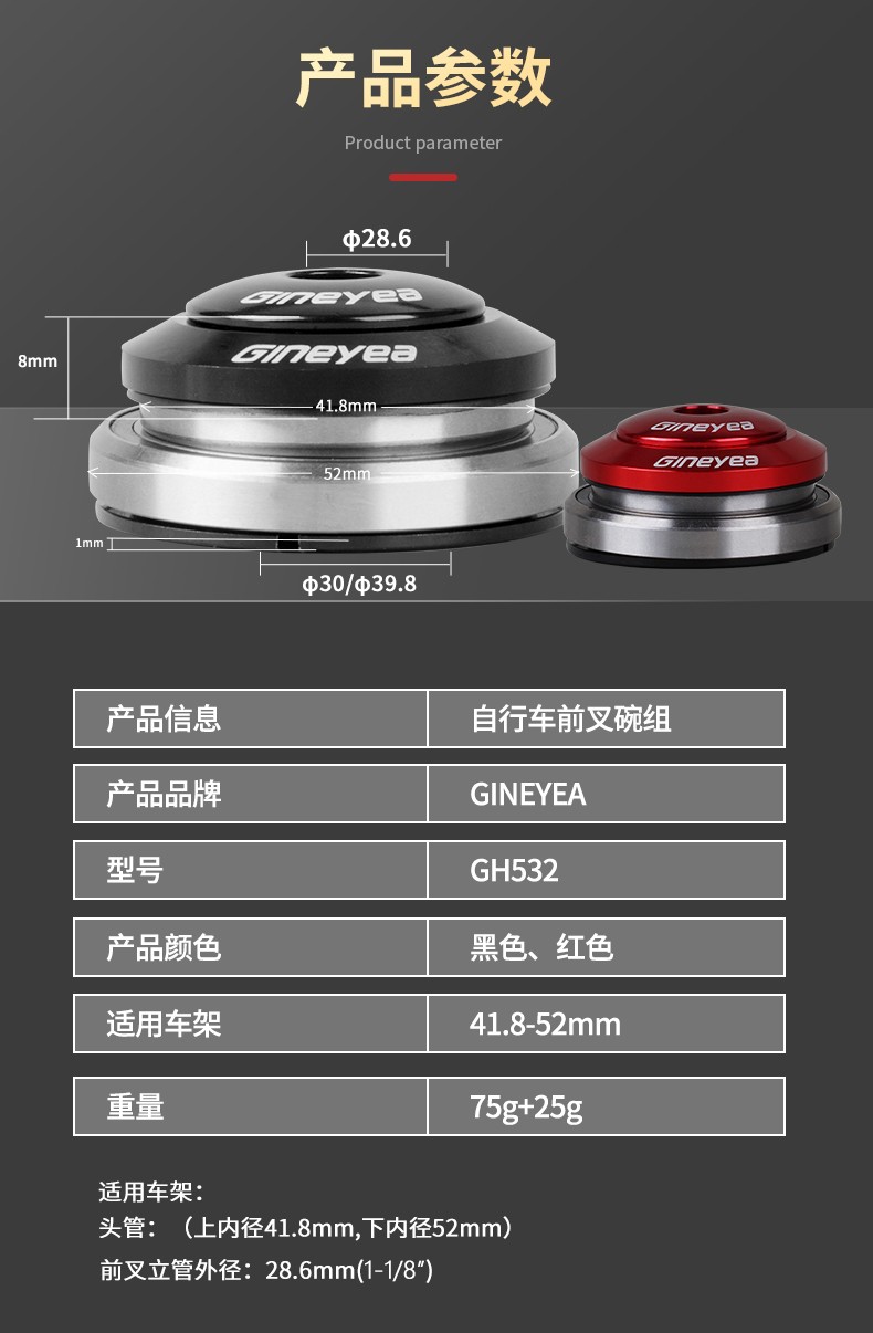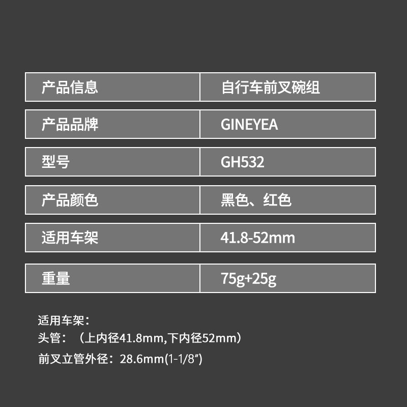 景曄自行車前叉腕組陶瓷軸承直管34/44/41/41.8mm椎管44-50.6/56