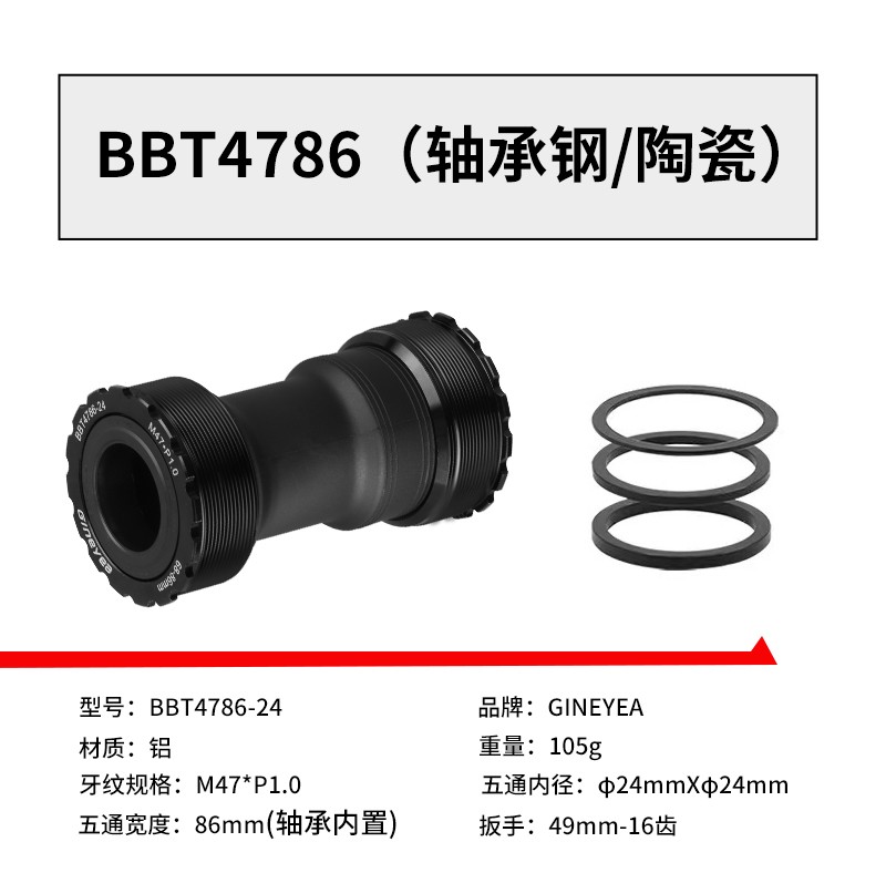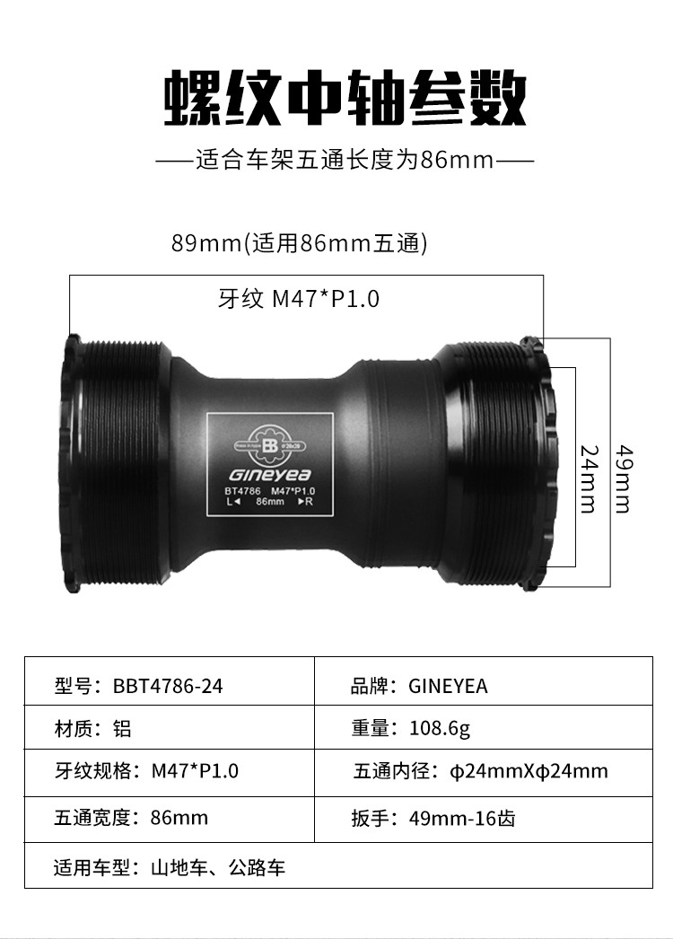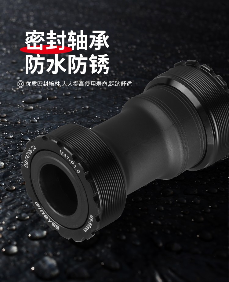 景曄t47中軸內(nèi)徑24mmBB螺紋培林密封中軸中空一體牙盤(pán)旋入式中軸