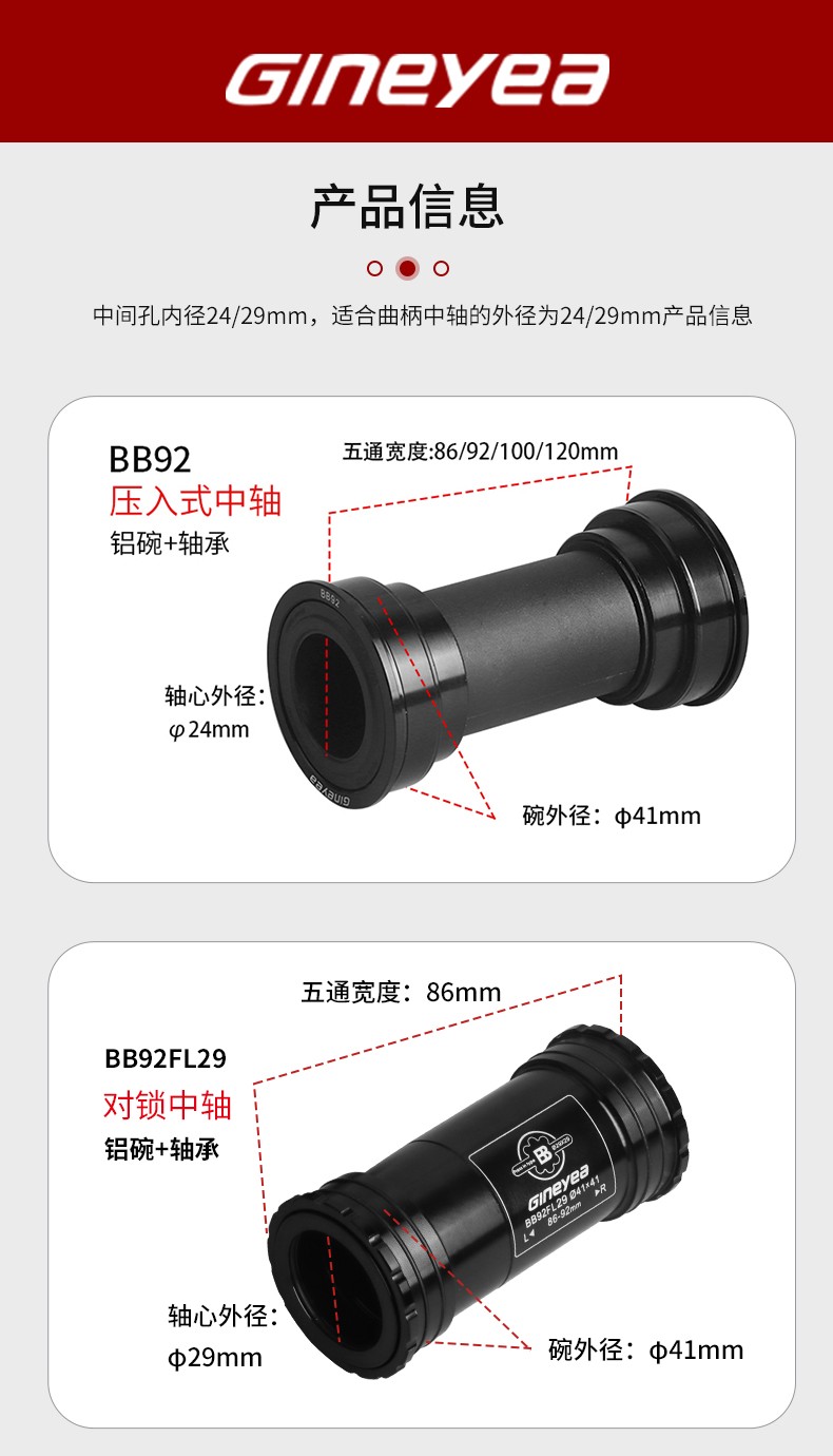 景曄386中軸山地公路自行車對鎖式中軸24/29中空一體牙盤壓入式
