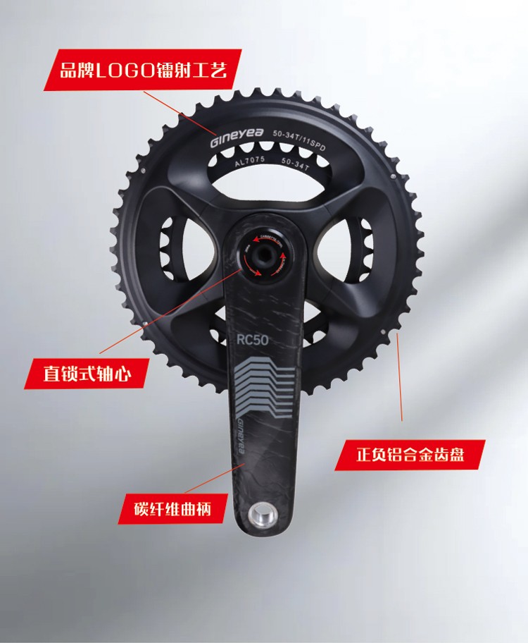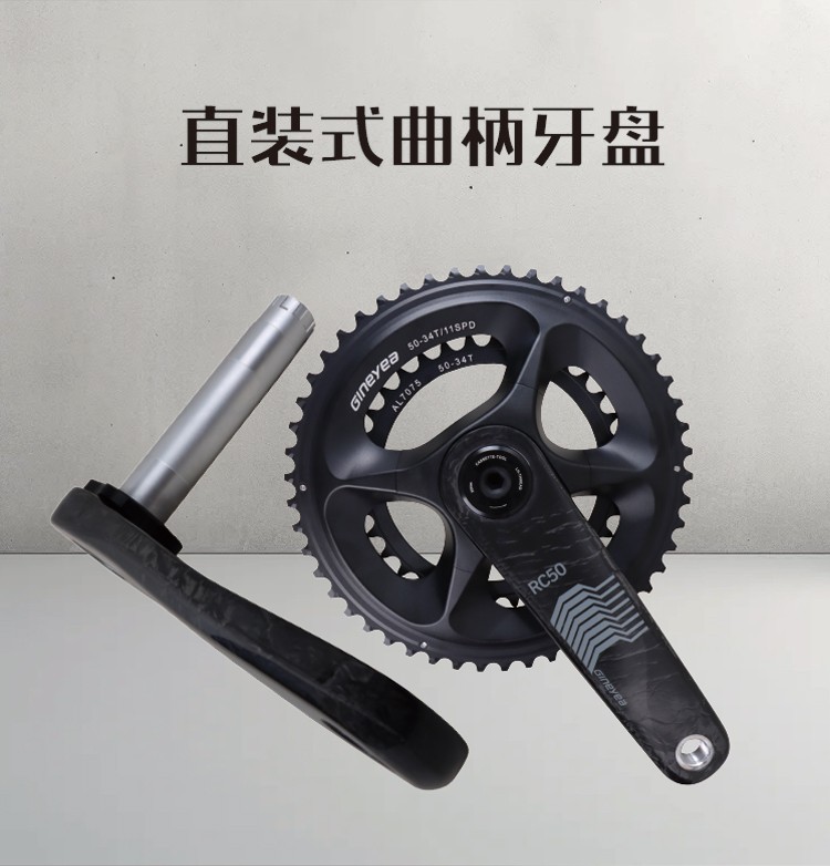 景曄碳纖維曲柄組件自行車牙盤一體套裝公路車牙盤曲柄直裝配件