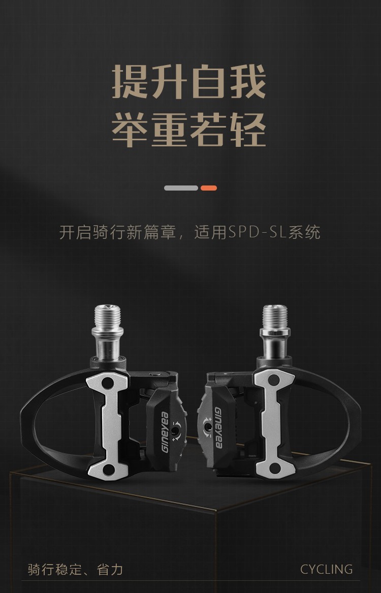 產品描述:品牌:GINEYEA(捷尼亞) 型號:P602 品號:13010426 品名:公路車鎖踏PRO(附鎖片6°)黑色執行標準:ISO4210 工藝:本體及扣片注塑成型材質:本體及扣片為工程塑料 軸心為鉻鉬鋼 顏色: 黑色/紅色/淺藍/橙色#公路車專業自鎖鎖踏,適用SPD-SL系統,自帶鎖片體驗不一樣的騎行速度、穩定、省力,踏板流線型一體化設計,高強度質量輕的尼龍材料加持,一對鎖踏僅重約278g,鎖片重量約88g,松緊度可調節的張力設置,靈...