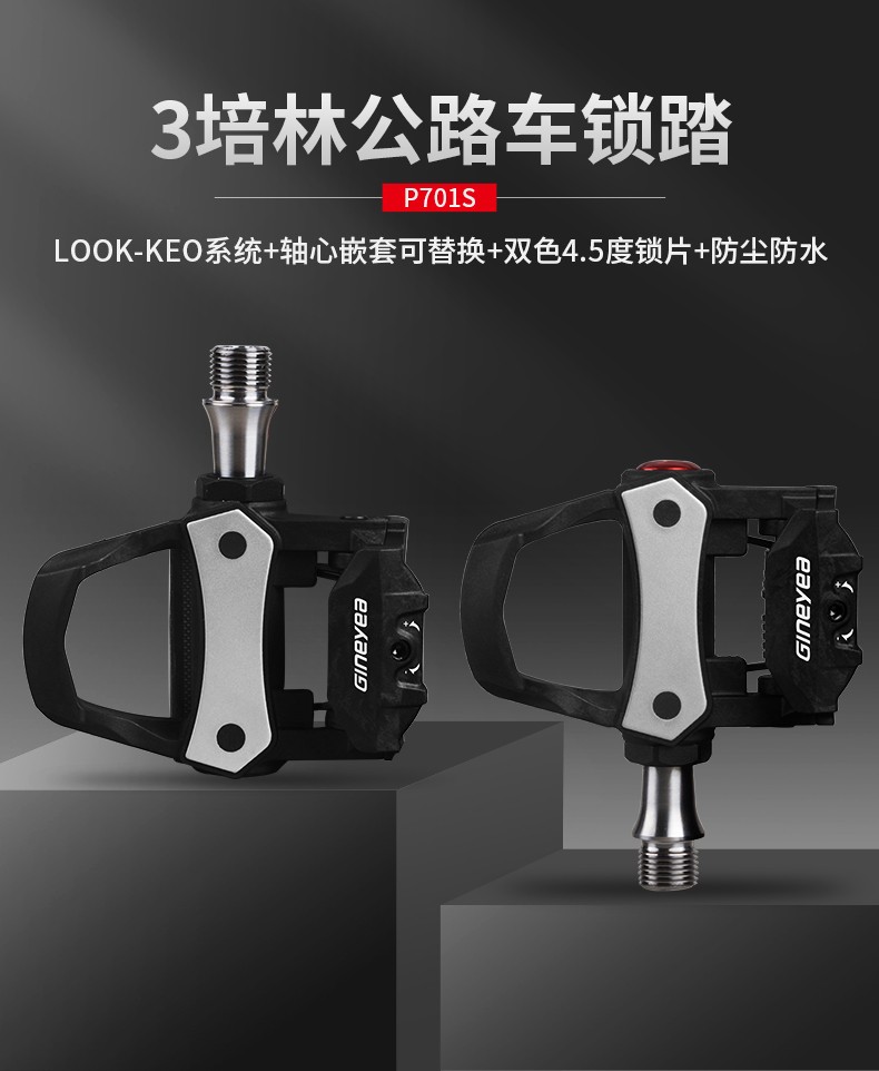 景曄公路車鎖踏三培林碳纖鈦軸自行車腳踏兼容Look系統附鎖片配件