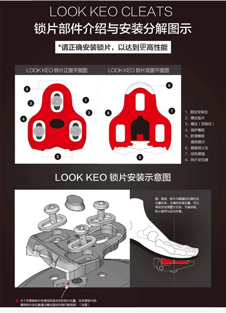 景曄公路車鎖踏三培林碳纖鈦軸自行車腳踏兼容Look系統(tǒng)附鎖片配件