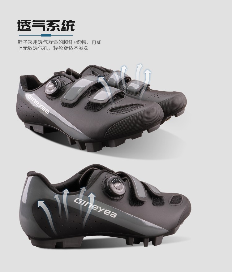 Gineyea新款透氣炭纖維山地車鎖鞋無鎖騎行鞋山地自行車男女鎖鞋