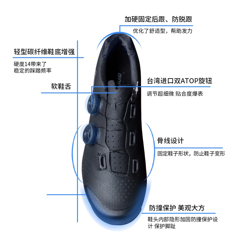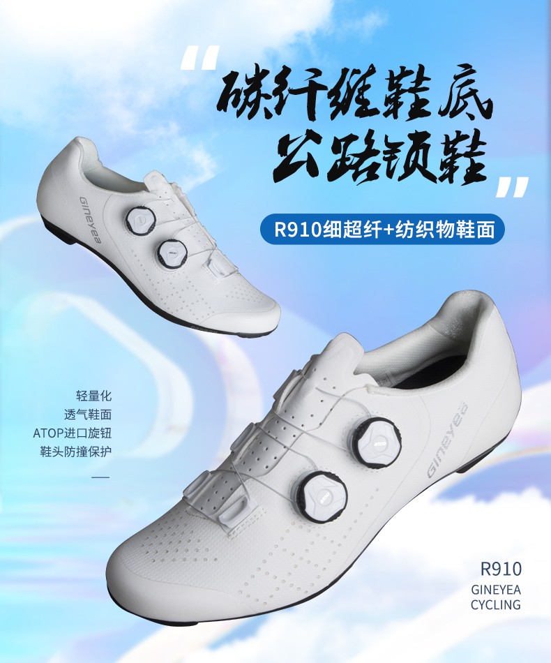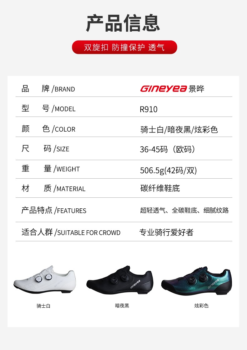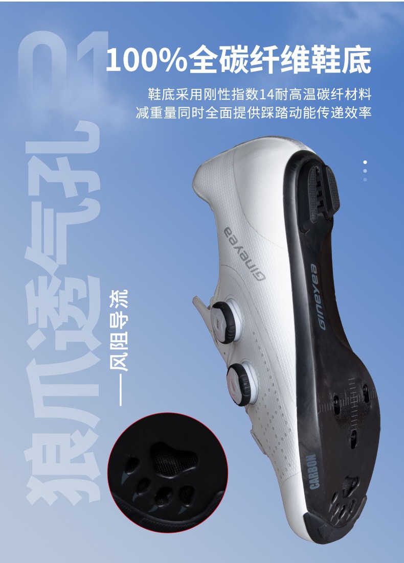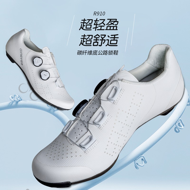 景曄新款炭纖維自行車公路鎖鞋14級硬度超輕碳纖公路旋鈕透氣騎行鞋